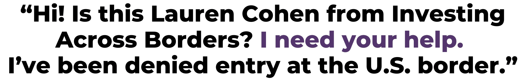 So, don't find yourself calling us in an emergency situation after being denied entry at the U.S. border (see the full story below)...Instead, complete your application to start working with the Investing Across Borders team NOW!!